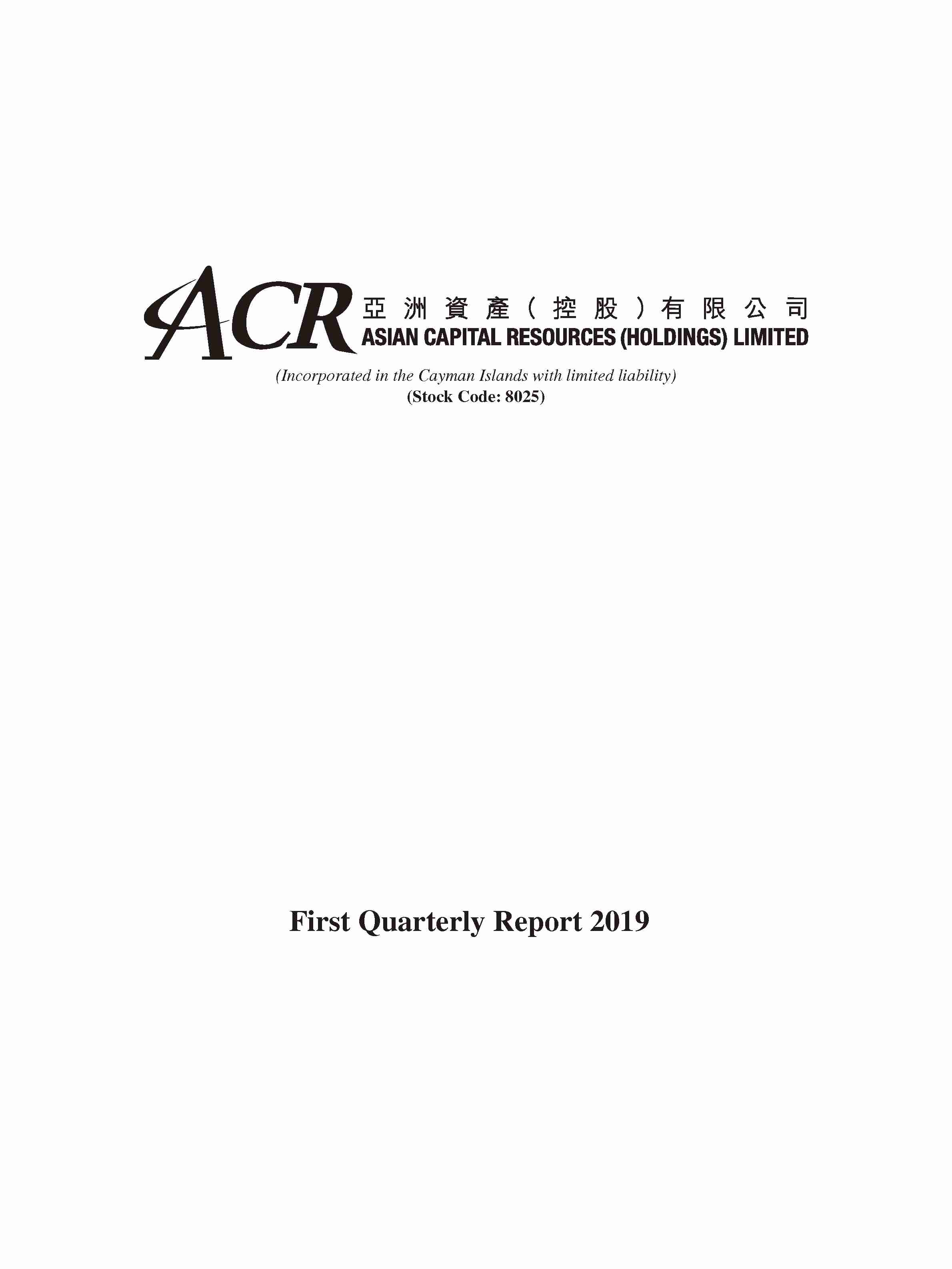 First Quarterly Report 2019