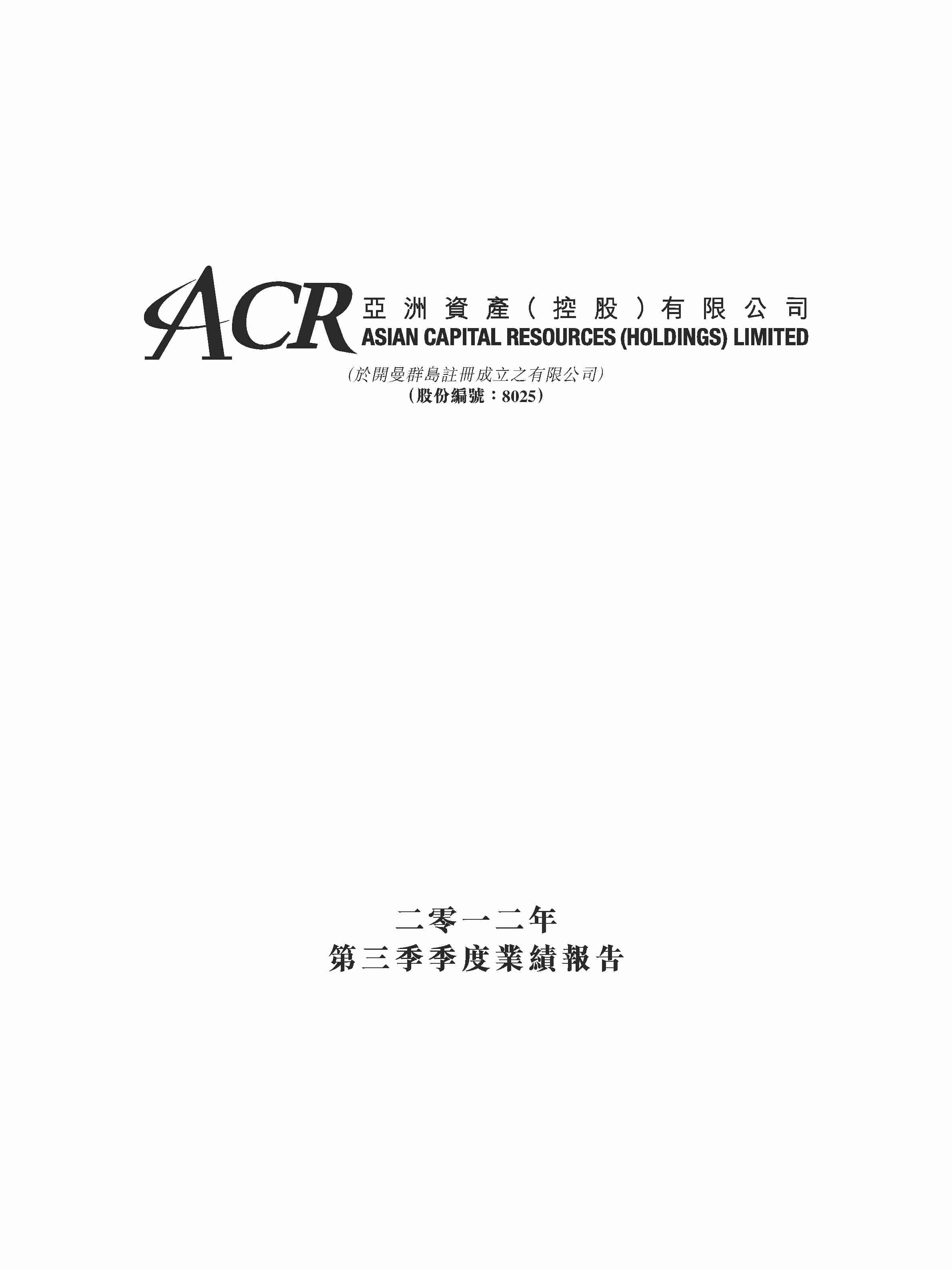 二零一二年 第三季季度業績報告