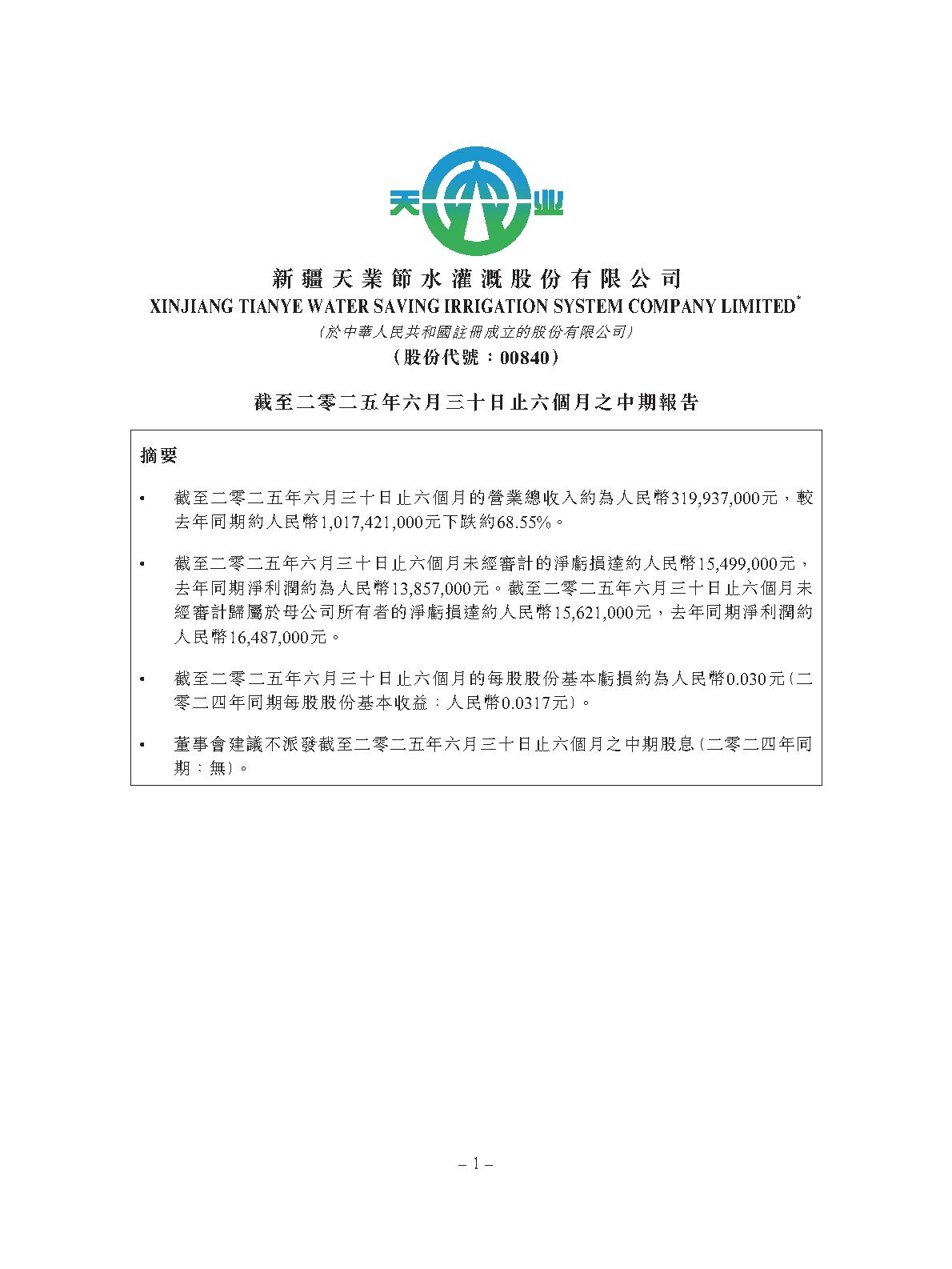 截至二零二五年六月三十日止六個月之中期報告